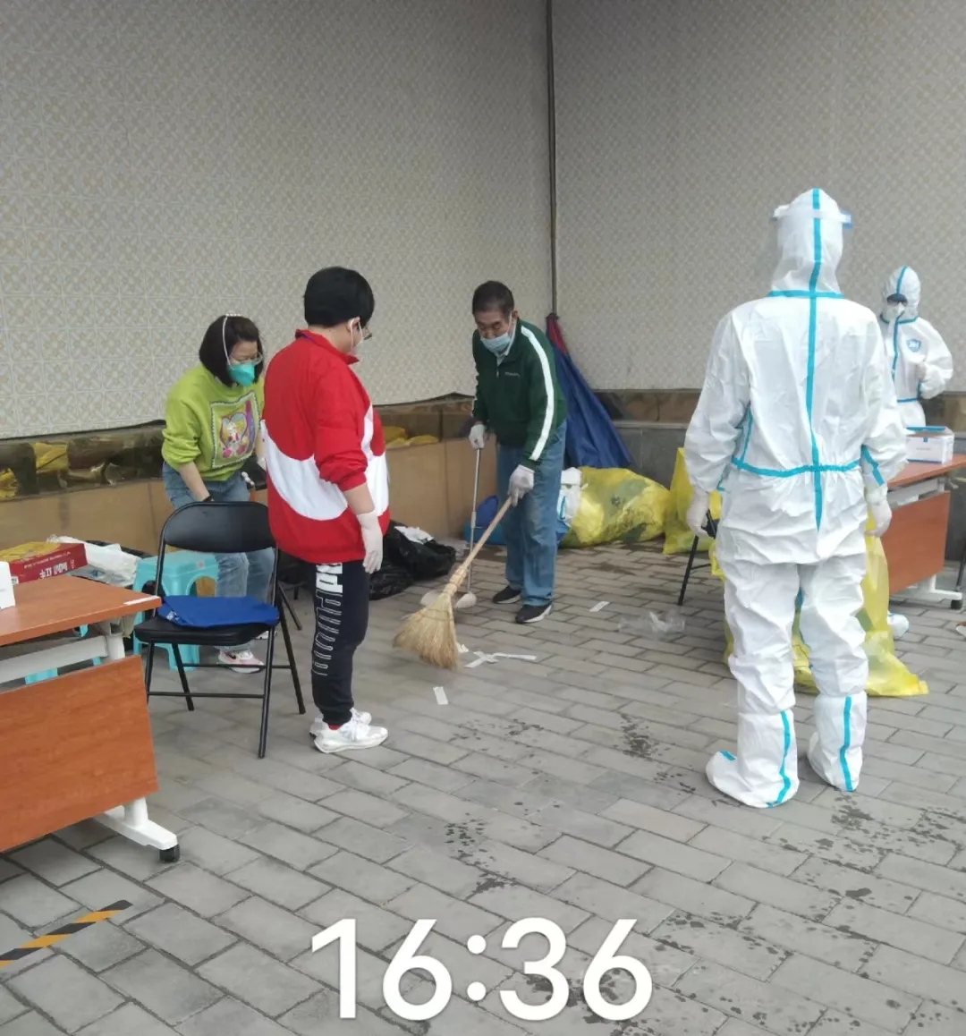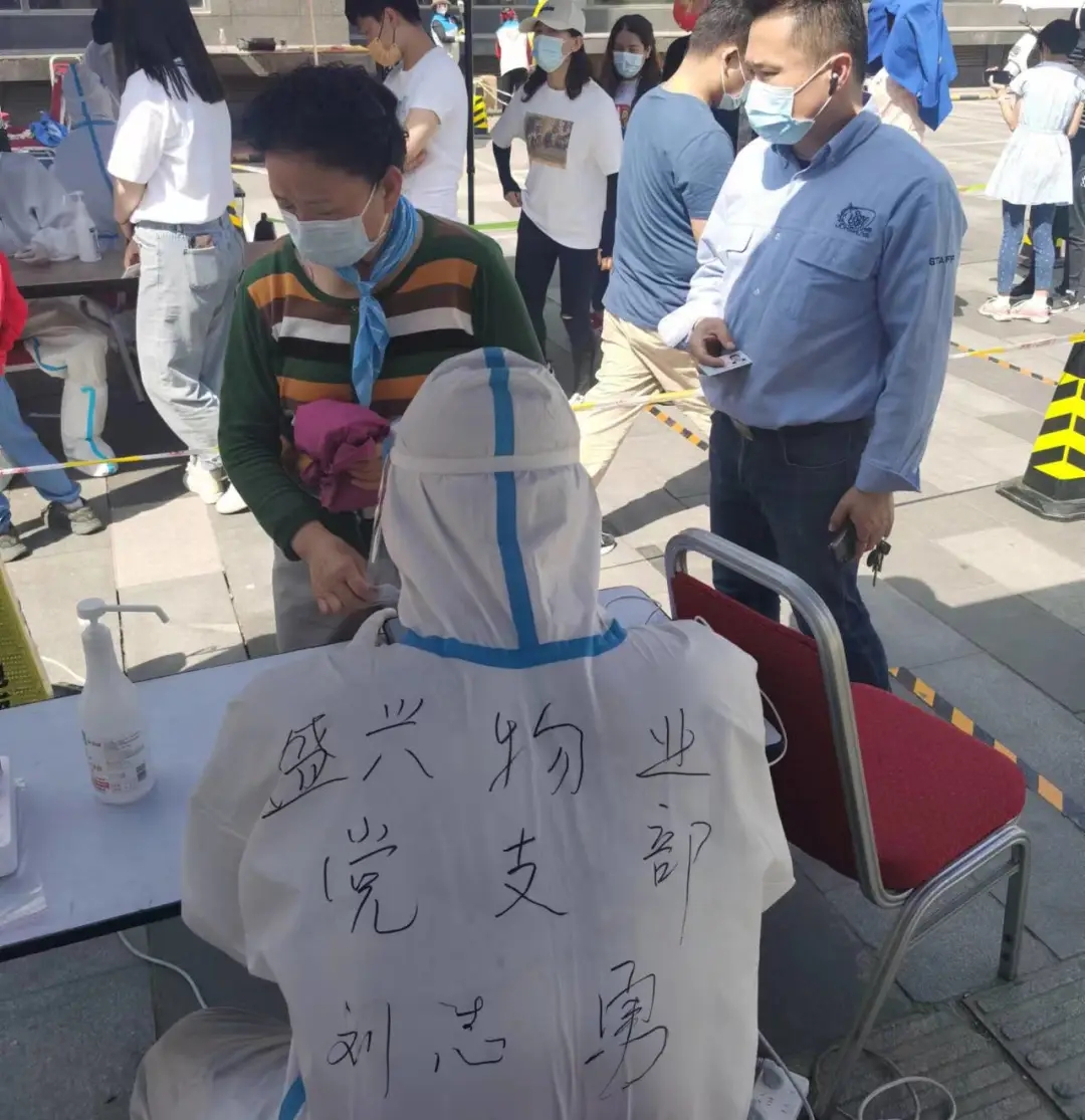 盛興員工們炎炎夏日身穿厚實的防護服,參與到日常的核酸檢測的工作中,協(xié)助核酸檢測工作人員運送核酸檢測物資,維護核酸檢測現(xiàn)場秩序,為炎熱天氣下的核酸檢測的有序進行保駕護航。