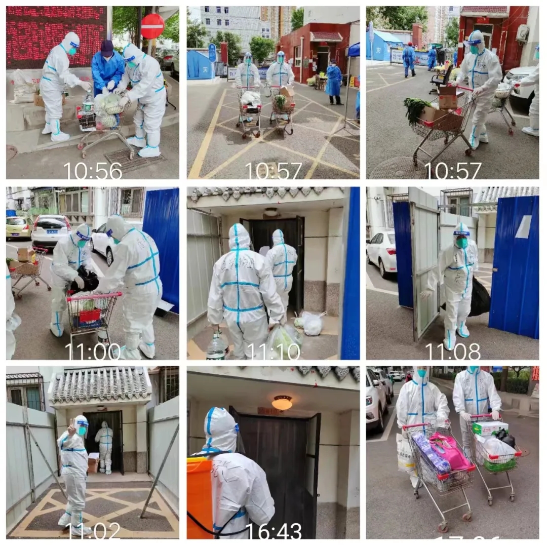 封控期間按照防疫要求,盛興物業(yè)工作人員們都變成了“大白”和“大藍(lán)”,與社區(qū)、所辦工作人員、醫(yī)護(hù)人員并肩作戰(zhàn),相互協(xié)作。10多天來大家不畏天氣冷熱的驟變,每天連續(xù)工作近12小時(shí),承擔(dān)了封控區(qū)居民快遞、外賣、送菜、送物資、收取生活垃圾等基礎(chǔ)工作。