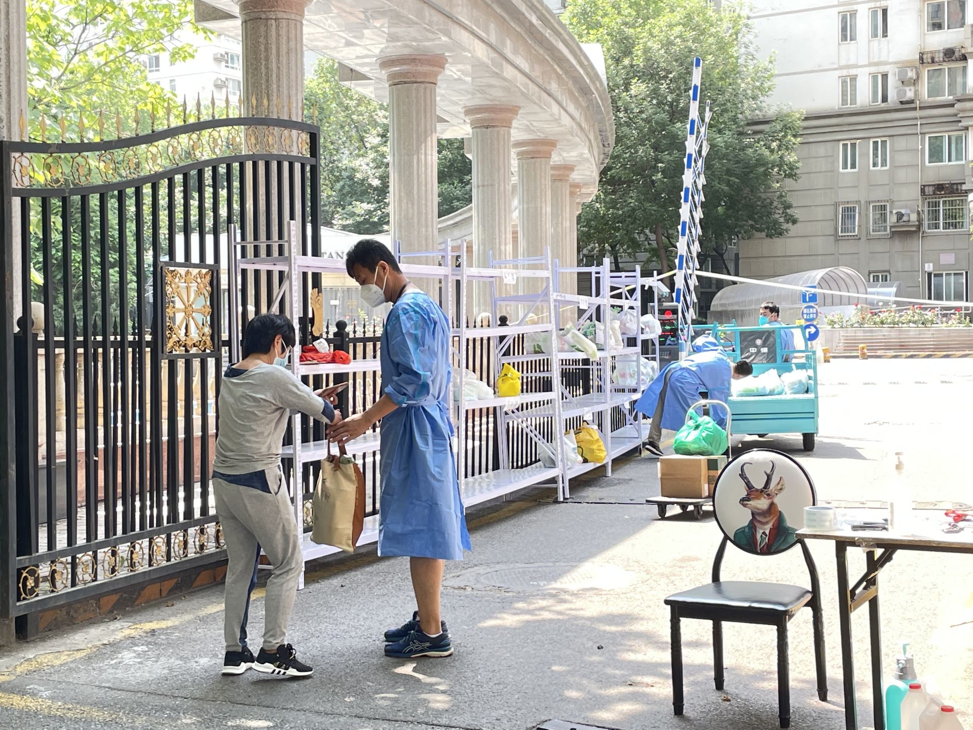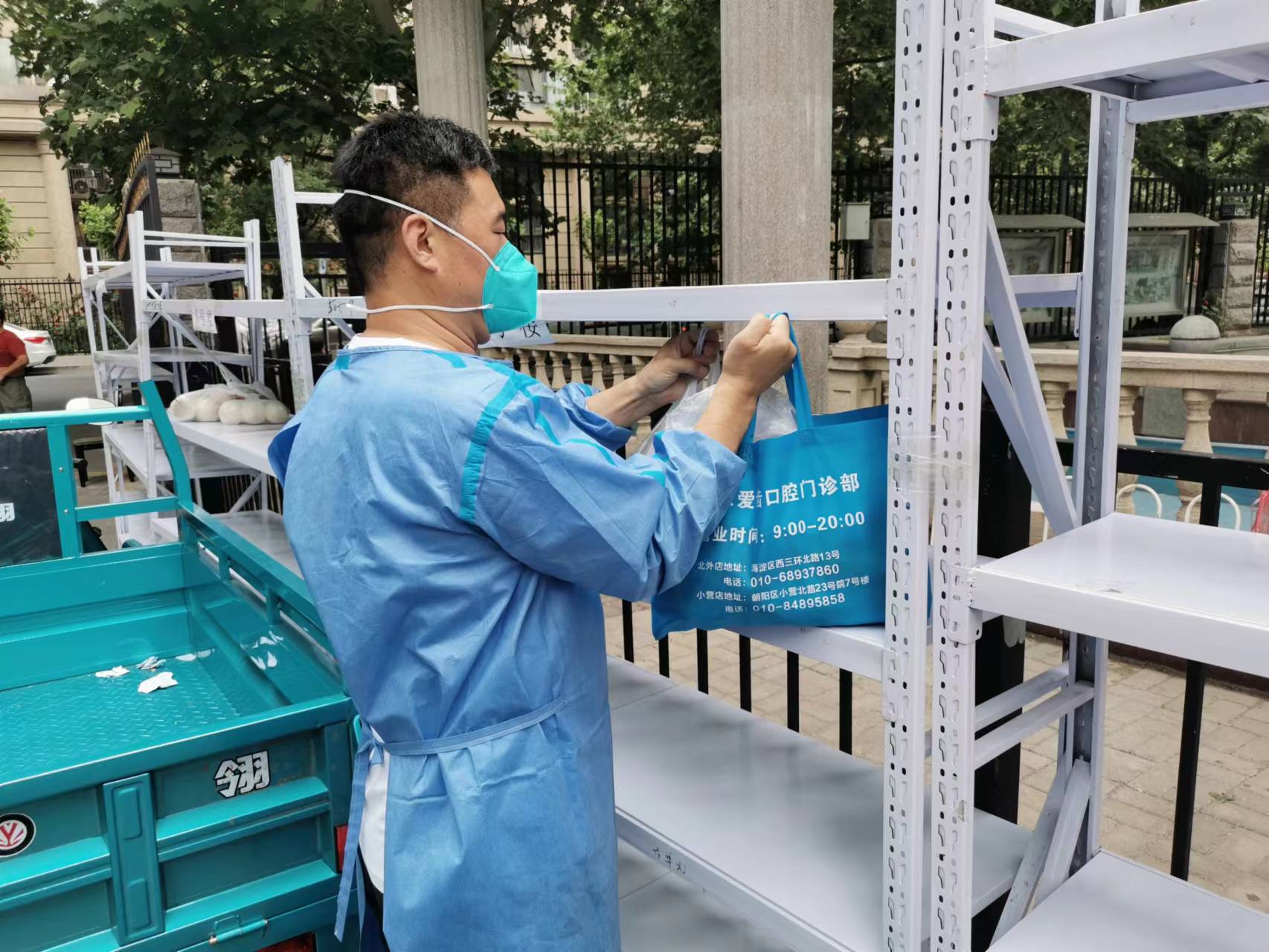 封控區(qū)內(nèi)的業(yè)主都是居家自我隔離,為了減少人員流動,物業(yè)人、社區(qū)志愿者充當(dāng)快遞員,送貨上門。小區(qū)北院居住1455戶,居民約6000多人,每天大量的物品送進(jìn)小區(qū),要負(fù)責(zé)送到各家各戶。這是一項艱巨的任務(wù),每人每天來回跑幾十趟。我們詳細(xì)標(biāo)注好業(yè)主信息,防止送錯物品,只要業(yè)主需要,馬不停蹄,不敢懈怠。所有物資,我們都在第一時間進(jìn)行了消殺,然后半小時內(nèi)保證送到業(yè)主家中;特別是生鮮冷凍食品,為了保證食材的新鮮,我們保證在15分鐘內(nèi)送至業(yè)主家中。